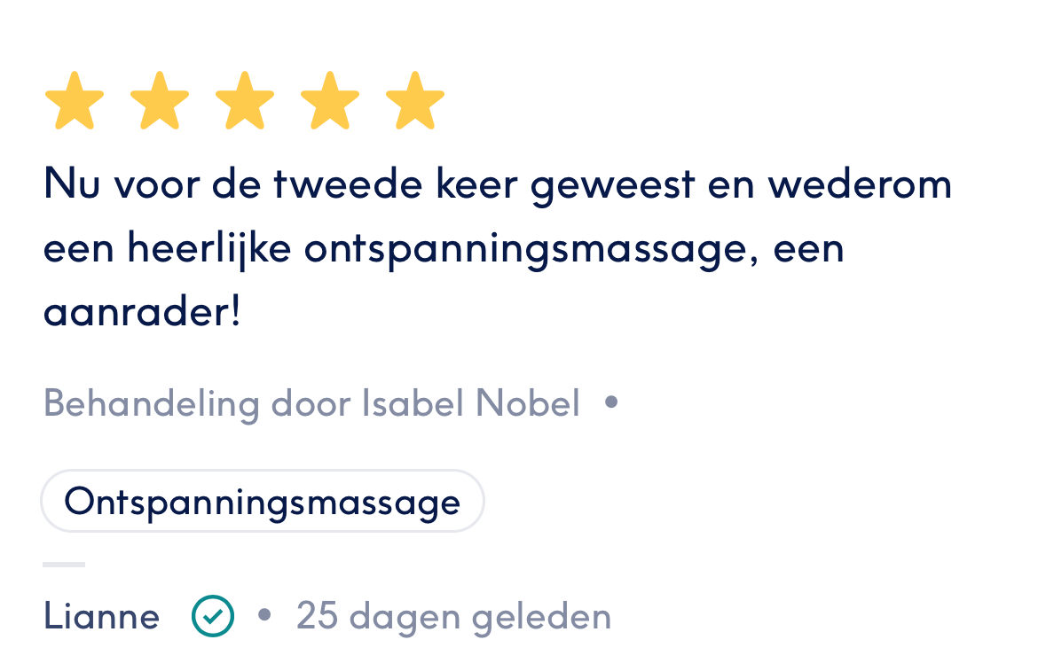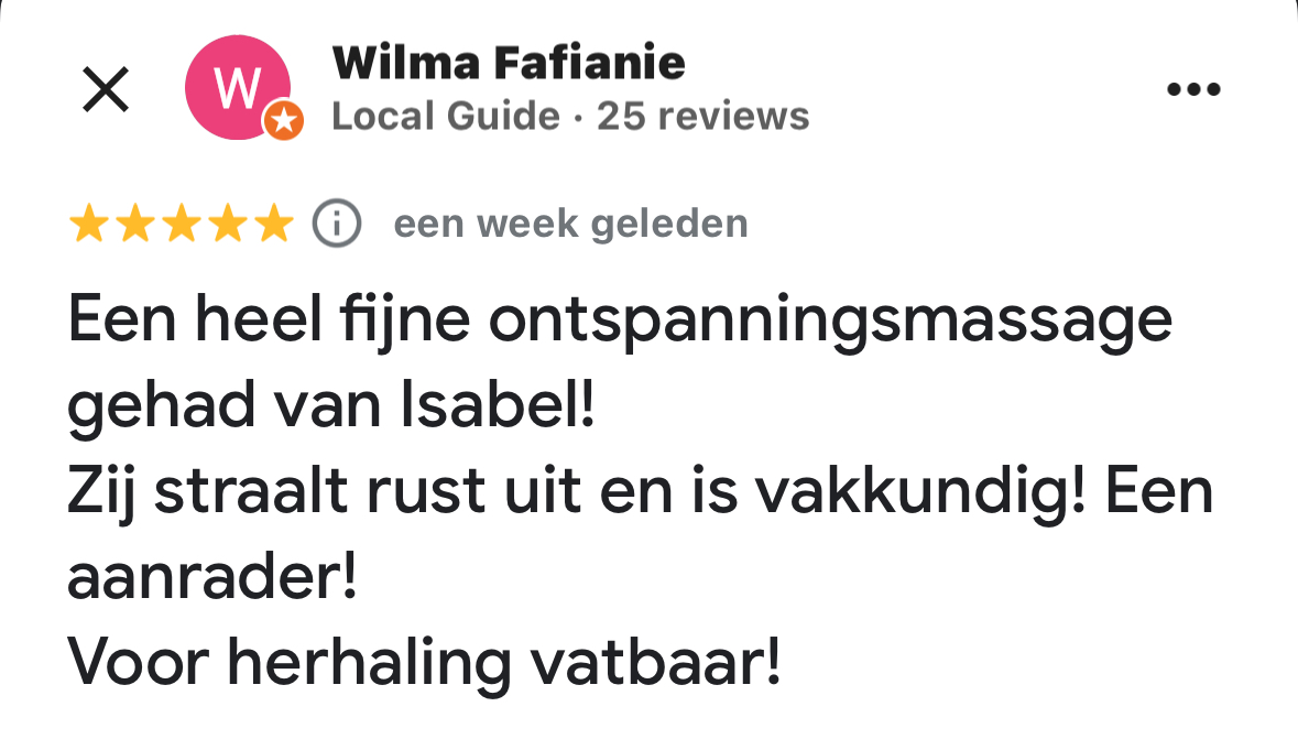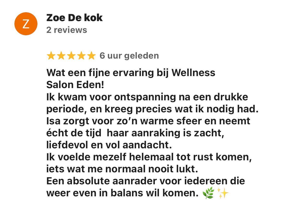 Ontwaak en schitter met onze unieke benadering van massage en natuurlijke olien. Laat je zintuigen verwennen door de kalmerende aanraking, terwijl je huid wordt gevoed met de kracht van natuurlijke ingrediënten. Ontdek de harmonie tussen lichaam en geest, en geef jezelf de luxe van ontspanning en revitalisatie. Met onze producten en behandelingen voel je je niet alleen herboren, maar straal je ook van binnenuit.