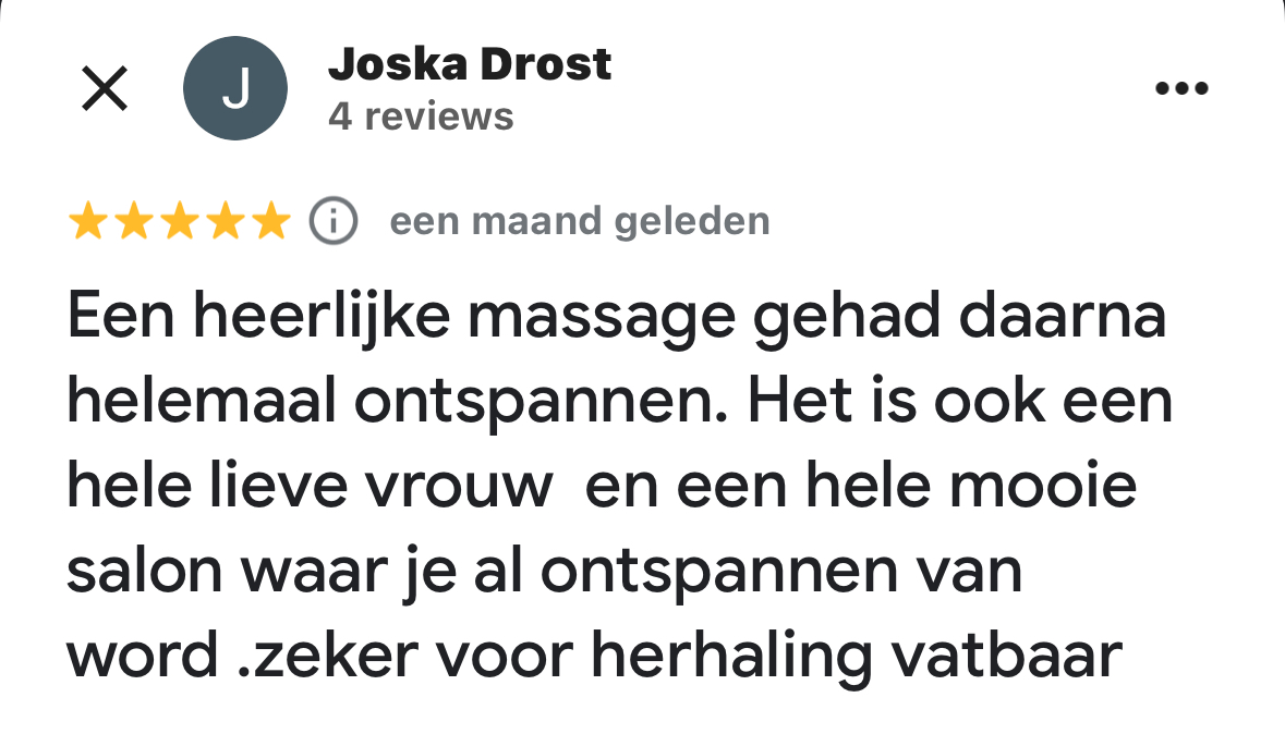 In onze massageruimte ervaren gasten een oase van rust en ontspanning. De serene ambiance en de unieke behandelingen zorgen er niet alleen voor dat iedereen de ruimte verlaat met een gevoel van vernieuwing, maar ook met de wens om snel terug te komen.